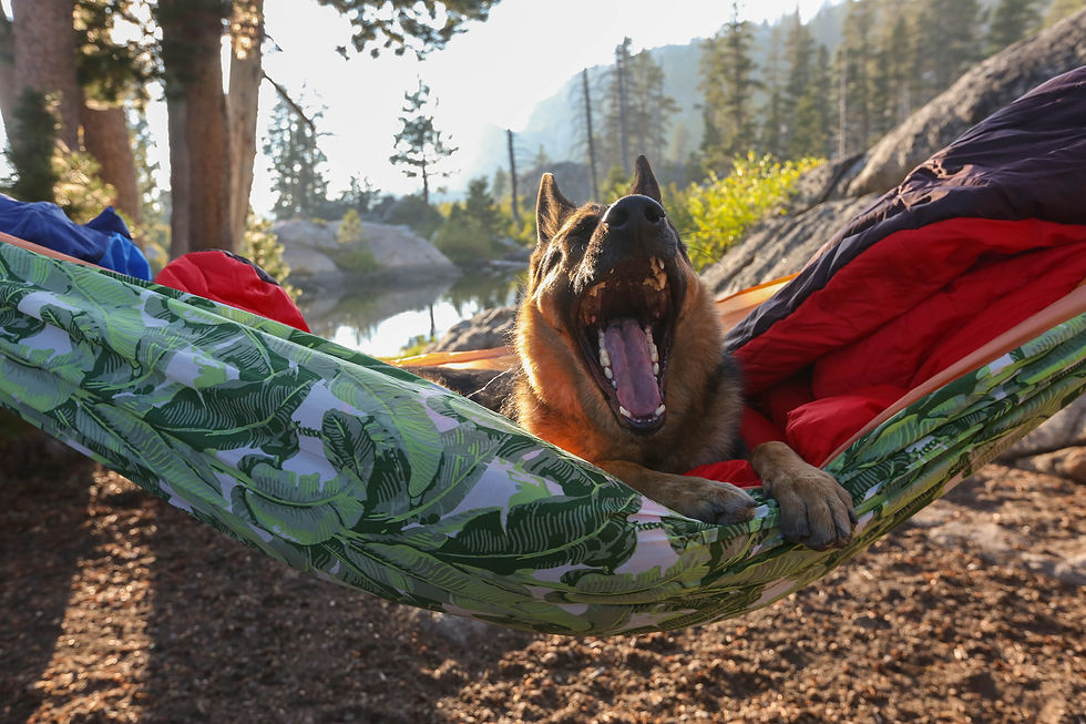 Andy tackled the tent without hassle, which was surprisingly roomy enough to fit our 100 lb #GermanShepherd as well as both of us comfortably. Pro tip #2- Don't forget a compact hammock! This was a lifesaver for many reasons. 1. It alleviated the need to carry two foldable chairs, which would have been more weight as well as a little bit cumbersome. 2. Hammocks are pretty comfortable, and can double as a bed if need be! (Even Gunther seemed to love it)